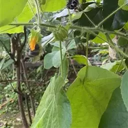 苘麻锦葵科苘麻属一年生亚灌木草本植物。茎秆较高,上面有柔毛;叶子较大且有纹路,浅绿色,边缘不平整,…