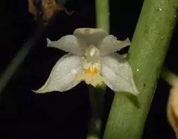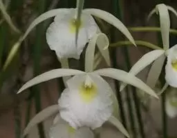 指甲兰是兰科指甲兰属植物。其茎粗壮;叶带状;总状花序疏生数朵花;萼片和花瓣淡白色,…