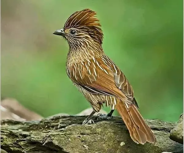 条纹噪鹛(学名:Grammatoptila striata)是画眉科、噪鹛属中型鸟类,体长28-32厘米。头具短的羽冠,上体栗褐色,飞羽外翻蓝灰色。下体棕栗色,腹以后转为褐白色。除飞羽和尾羽外,所有上、下体羽均具白色羽干纹。极为醒目。野外特征明显,容易识别。虹膜橙红色,嘴黑褐色,脚暗褐色。