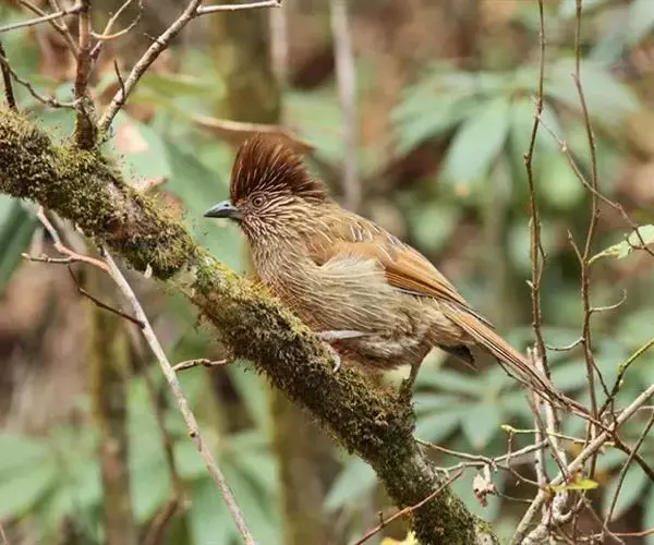 褐头凤鹛小型鸟类,体长12~13厘米。头顶有可竖立的红褐色羽冠,头侧、枕、颊、喉和下体白色,…