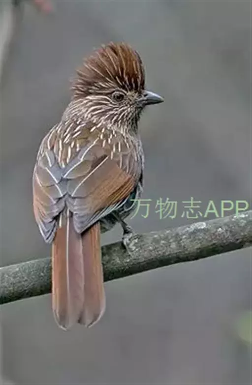 棕噪鹛中型鸟类,体长25~28厘米。上体赭褐色,头顶具黑色羽缘,尾上覆羽灰白色,尾羽棕栗色,…
