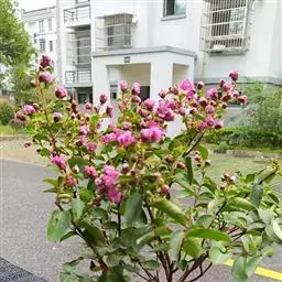 一般通过压条培育新株。压条的时间一般在每年的11月至次年2月。首先在整好的苗圃地上按行距40厘米,开20厘米至30厘米深的沟,沟内施入2厘米至3厘米的牛粪或马粪做底肥。结合冬春修剪,选品种优良、花大色艳、无病虫害的健康植株做母株,采取发育充实的一年生或二年生枝,要求径粗1厘米至4厘米,长度不限,在清水中浸泡2个小时后,顺沟斜埋,然后覆土踏实根部,上部顺沟压倒,覆土10厘米至15厘米厚,并浇一次透水,用塑料薄膜严密覆盖增温保湿,上盖草苫2层至3层防冻,遇晴朗天气白天可揭去草苫增温,傍晚重新盖上。如此处理,一般3月中旬即可萌芽生长,4月即可见到有嫩芽露出地面,此时可重新做小拱棚用塑料薄膜覆盖,去掉草苫。若棚内气温超过30℃则通风降温。从3月中旬开始应每20天揭膜顺沟培土一次,共3次到4次,使苗基部由原来的高度变成10厘米高的垄,促使产生大量不定根。 大花紫薇 5月底去掉拱棚,根据苗出芽情况分段截开,每个萌芽即成独立的幼苗,此时应打顶促发侧枝,并追施农家肥,如稀薄饼肥水或尿素水一次,重新顺沟培土,促进生长。以后再追肥3次至4次,若出现花蕾及时疏掉,一般当年即可成为冠形丰满、枝繁叶茂的植株,秋后选雨天将苗带土起出,尽量避免损伤毛细根,移到有阳光和水肥充足的地方栽植,成活后应控制水肥,增强其适应力。通过比较,在同样条件下,用此法繁殖的紫薇苗,不但根系发达,移栽后成活率高,而且在冠形等方面明显优于其它繁殖苗。