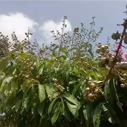 防治豹纹木蠹蛾,可用棉花蘸 80%的敌敌畏乳油 500 倍液堵塞洞口或灌注坑道杀死坑内幼虫。防治栗黄枯叶蛾、丽绿刺蛾、大袋蛾、棉古毒蛾和双线盗毒蛾,可在嫩梢期,用印楝素乳油 500 倍~800 倍液,或 5%的鱼藤乳油 1000 倍液,或 90%敌百虫或 50%杀螟松乳剂 1000 倍~3000 倍液喷布新梢。防治中华管蓟马,可在虫口高峰前期喷 40%乐果乳剂 300 倍~500 倍液,或 80%敌敌畏乳剂 3000 倍液,或 50%杀螟松乳剂 1000 倍~3000 倍液喷布新梢。