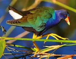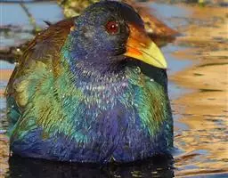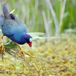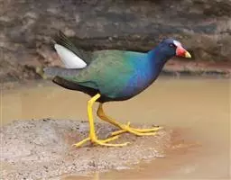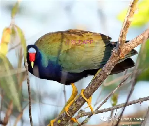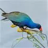 与秧鸡科(Rallidae)的水鸡 短翅水鸡 有亲缘关系。色艳丽,体羽艳蓝和铜绿色。喙大,红色,有红色的额盾延伸到前额。以草籽为食。营巢于地面上。每窝产卵一到两枚。卵乳黄色具褐斑。幼雏黑色,体被绒羽。