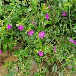 细叶萼距花 小灌木,分枝多而铺散,长30-40厘米。叶对生,卵状披针形,长3-4厘米。花单生于叶腋…