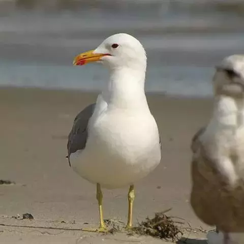 银鸥又名黑背鸥、淡红脚鸥、黄腿鸥、鱼鹰子和叼鱼狼等,全长约60厘米。体型厚重,头部平坦。夏羽头、颈…