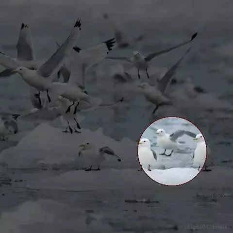 灰翅鸥,夏羽头、颈、腰、尾白色;肩、背和翅上覆羽鸽灰色。冬羽和夏羽相似,但头和颈具淡褐色纵纹,有时…