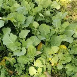 又名油菜。它的籽可以榨油。九、十月间插种,长出来的叶子形状颜色有点像白菜。