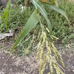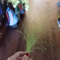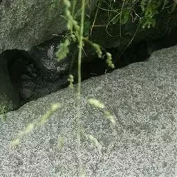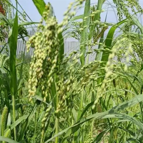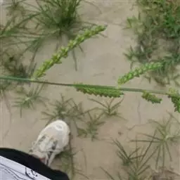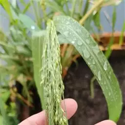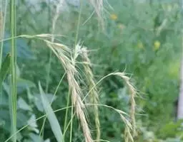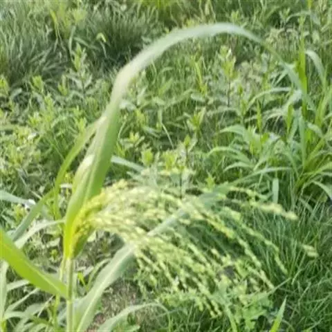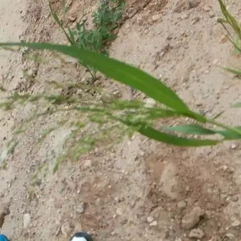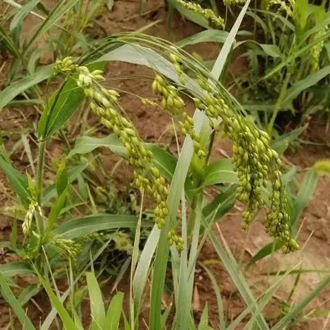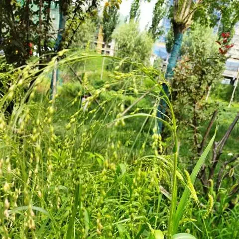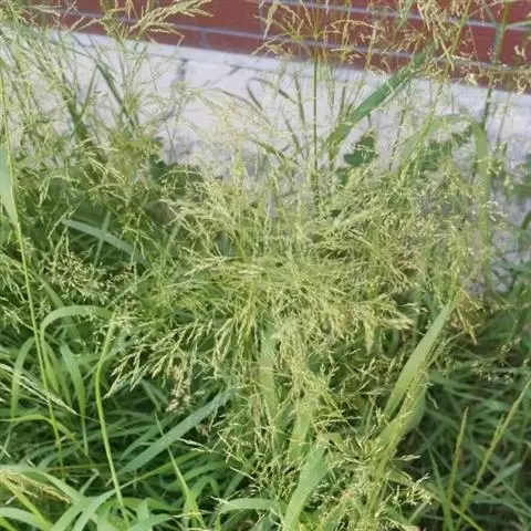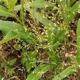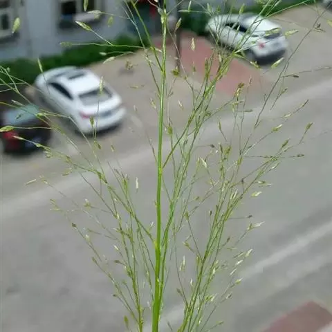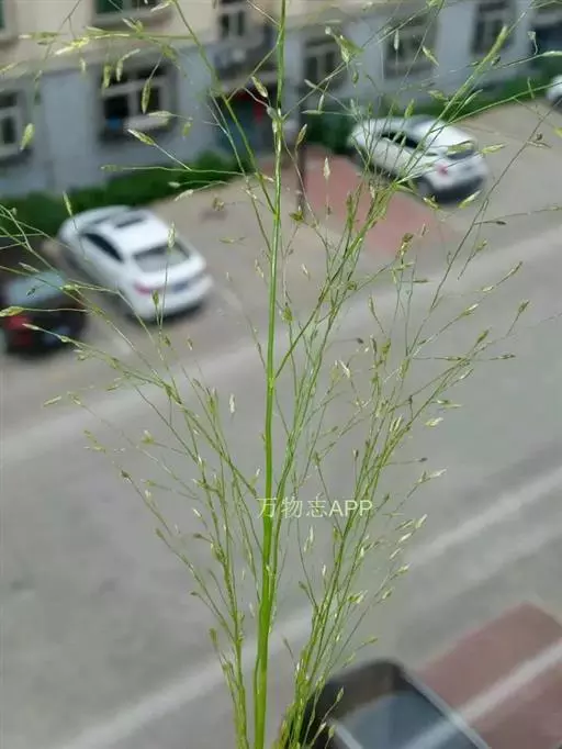 ,下部的常长于节间;叶舌膜质,截形,长约1毫米,顶端被睫毛;叶片线形,长8-15厘米,宽4-6毫米,质较柔软,顶端渐尖,基部圆钝,两面无毛。圆锥花序开展,长10-20厘米,宽可达15厘米,基部常为顶生叶鞘所包,花序分枝纤细,微粗糙,上举或开展;小穗卵状长圆形,长约3毫米,顶端尖,无毛,有柄,顶端膨大,柄长于小穗;第一颖宽卵形,顶端尖,长约为小穗的1/3,具3-5脉,或侧脉不明显;第二颖长卵形,与小穗等长,顶端喙尖,具11-13脉;第一外稃与第二颖同形,近等长,具9-11脉,内稃薄膜质,具2脊,几与外稃等长,但狭窄;第二外稃狭长圆形,革质,表面平滑,光亮,长约2.2毫米。鳞被细小,多脉,长约0.3毫米,宽约0.38毫米,局部折叠,肉质,染色体2n=54 (Ramanathan,1950)。