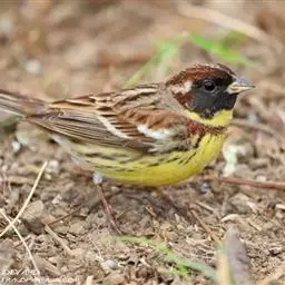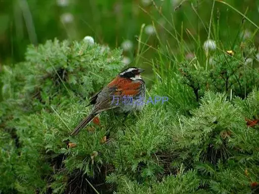 栗斑腹鹀:属小型鸣禽。体重19-25克,体长145-167毫米。头顶至背栗红色,眼先和颧纹黑褐色,…
