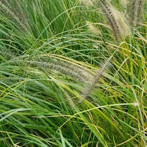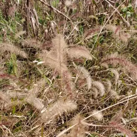 狼尾草(Pennisetum alopecuroides (L. ) Spreng.),多年生。须根较粗壮。秆直立,丛生,在花序下密生柔毛。叶鞘光滑,两侧压扁,秆上部者长于节间;叶舌具长约2.5毫米纤毛;叶片线形,先端长渐尖,基部生疣毛。圆锥花序直立;主轴密生柔毛;总梗长2-3(-5)毫米;刚毛粗糙,淡绿色或紫色;小穗通常单生,偶有双生,线状披针形;花药顶端无毫毛;花柱基部联合。颖果长圆形,长约3.5毫米。叶片表皮细胞结构为上下表皮不同;上表皮脉间细胞2-4行为长筒状、有波纹、壁薄的长细胞;下表皮脉间5-9行为长筒形,壁厚。花果期夏秋季。