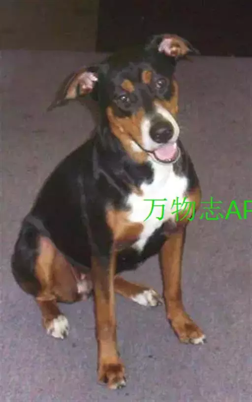 大瑞士山地犬 头部结实,吻部相对于颅骨较粗短,眼睛为谈褐色至粟色的多种颜色,眼神深沉温顺,充满智慧和爱。眼睛上侧有对称的棕褐色斑点。鼻子黑色。耳三角形,较小,下垂。颈部粗壮而短,胸部十分宽厚,背部结实健壮,背线平直。下腹微上提,但不太明显。前肢健壮,笔直;后肢粗壮结实。足中等大小,短而圆。尾始终下垂,不向上卷曲。被毛外层毛较粗硬,光顺平滑,长度不超过5厘米,另有厚实的内层毛。被毛颜色主要是黑色和棕褐色,棕褐色区域以黑或白斑分布边界。头部从额头到鼻子周围一条白色斑条,白色有的延伸到胸部、脚趾、尾端等。大瑞士山地犬,这种瑞士本地犬是大型斗牛獒犬最早的后代之一,古罗马人将这种大型斗牛獒犬带到阿尔卑斯山地区。在瑞士的偏远地区,大瑞士山地犬被农场主用于放牧牲畜、守卫和拉车。瑞士的四种猎犬中,大瑞士山地犬是体形最大最古老的一种。许多年来,瑞士以外的地区对大瑞士山地犬的起源知道得很少,但大瑞士山地犬对圣伯纳犬和罗威纳犬的早期发展是有帮助的。