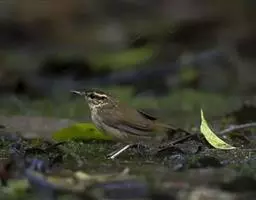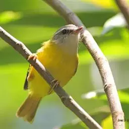 黑脸鹟莺(学名:Abroscopus schisticeps):体长10厘米,是有特色的体小而多彩的莺鸟。粗眉纹,颏、喉及尾下覆羽黄色,脸罩黑,头顶及颈背灰色,上体绿,无翼纹,腹白。虹膜褐色;上嘴色深,下嘴肉色;脚偏绿色。