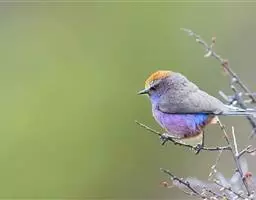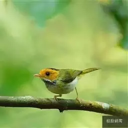 棕脸鹟莺:体长10厘米,是一种色彩亮丽而有特色的莺鸟。头栗色,具黑色侧冠纹。上体绿,腰黄色。下体白,…
