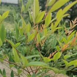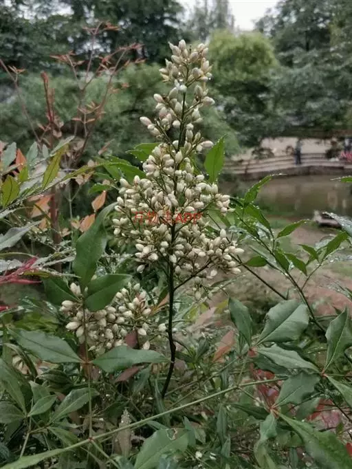 (3)水肥要因时因生长发育期而异。南天竹喜湿润但怕积水。生长发育期间浇水次数应随天气变化增减,每次都不宜过多。一般春秋季节每天浇水一次,夏季每天浇两次,保持盆土湿润即可。开花时,浇水的时间和水量需保持稳定,防止忽多忽少,忽湿忽干,不然易引起落花落果,冬季植株处于半休眠状态,要控制浇水。若浇水过多易徒长,妨碍休眠,影响来年开花结,果;南天竹喜肥,5~9月,可每15~20天施一次稀薄饼肥水,约每两个月浇一次0.2%硫酸亚铁水。幼苗期施液肥宜淡不宜浓(液肥与水按1:10),成株期可稍浓些(液肥与水按1:8)。雨季改施干肥,每月一次,每盆约20~40克。
