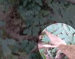 常绿小灌木。茎常丛生而少分枝,高1-3米,光滑无毛,幼枝常为红色,老后呈灰色。叶互生,集生于茎的上部,三回羽状复叶,长30-50厘米;二至三回羽片对生;小叶薄革质,椭圆形或椭圆状披针形,长2-10厘米,宽0.5-2厘米,顶端渐尖,基部楔形,全缘,上面深绿色,冬季变红色,背面叶脉隆起,两面无毛;近无柄。