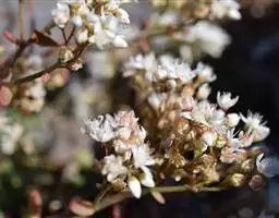 圆锥花序顶生,通常塔形,长16-40厘米,宽3-17厘米;下部第一回分枝长2.5-14.5厘米,与花序轴成35-50度角斜上;花序轴与花梗均被腺毛;小苞片狭卵形,长约2.1毫米,宽约1毫米,全缘或具齿;花梗长1-1.2毫米;萼片5,卵形、阔卵形至椭圆形,长1-2毫米,宽1-1.2毫米,先端钝或微凹且具微腺毛、边缘膜质,两面无毛;花瓣5,白色或紫色,线形,长2-4.5毫米,宽0.2-0.5毫米,先端急尖,单脉;雄蕊10,长1.3-5毫米;雌蕊长3.1-4毫米,心皮2,仅基部合生,子房半下位,花柱稍叉开。