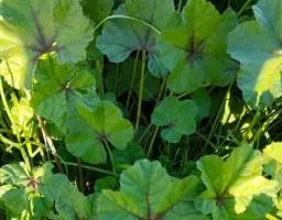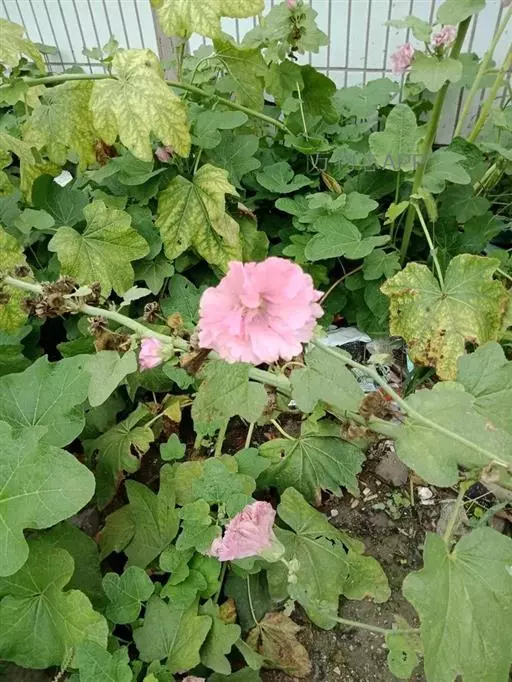 蜀葵 多年生老株蜀葵易发生蜀葵锈病,感病植株叶片变黄或枯死,叶背可见到棕褐色、粉末状的孢子堆。
