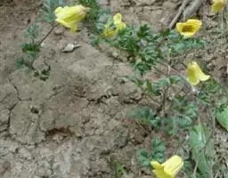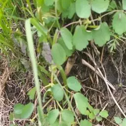 地下具纺缍状小块根,长约2厘米,直径1厘米。地上株丛高约30厘米,茎长纤细而直立,分枝少,具刚毛。根生叶具长柄,椭圆形,多为三出叶,有粗钝锯齿。