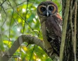 褐林鸮是夜行猛禽。喙坚强而钩曲。嘴基蜡膜为硬须掩盖。翅的外形不一,第五枚次级飞羽缺。尾短圆,…