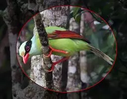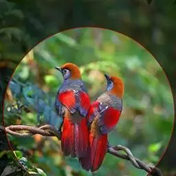赤尾噪鹛中型鸟类,体长24~28厘米。头顶至后颈红棕色,两翅和尾鲜红色,眼先、眉纹、颊、颏和喉黑色,…