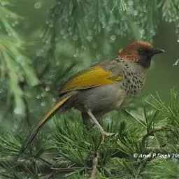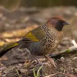 蓝翅噪鹛:噪鹛科、彩翼噪鹛属动物。中型鸟类,体长22-25厘米。上体棕橄榄褐色密被黑色鳞状斑,…