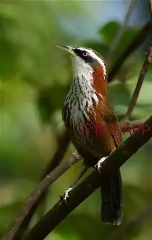 大噪鹛:中型鸟类,体长32-36厘米。额至头顶黑褐色,背栗褐色满杂以白色斑点,…