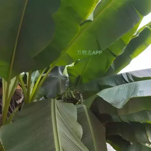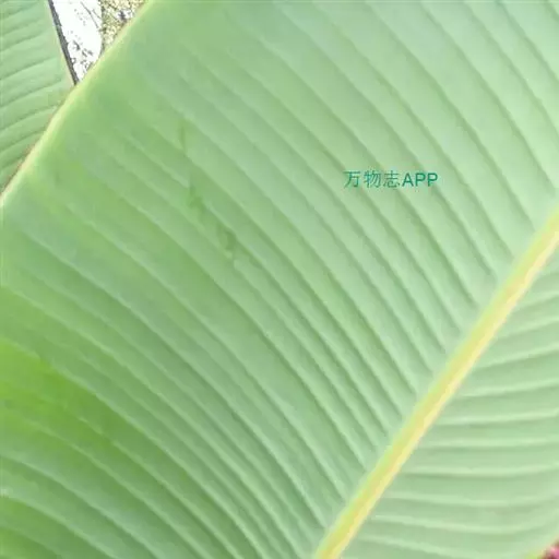 红蕉,假茎高1-2米。叶片长圆形,长1.8-2.2米,宽68-80厘米,叶面黄绿色,叶背淡黄绿色,…