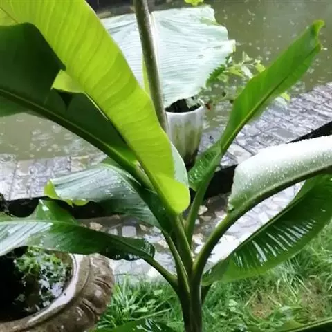 其可丛植于庭前屋后,或植于窗前院落,掩映成趣,更加彰显芭蕉清雅秀丽之逸姿。芭蕉还常与其他植物搭配种植,组合成景。蕉竹配植是最为常见的组合,二者生长习性、地域分布、物色神韵颇为相近,有”双清“之称。芭蕉还可以做盆景,是古人喜欢的一种清玩。
