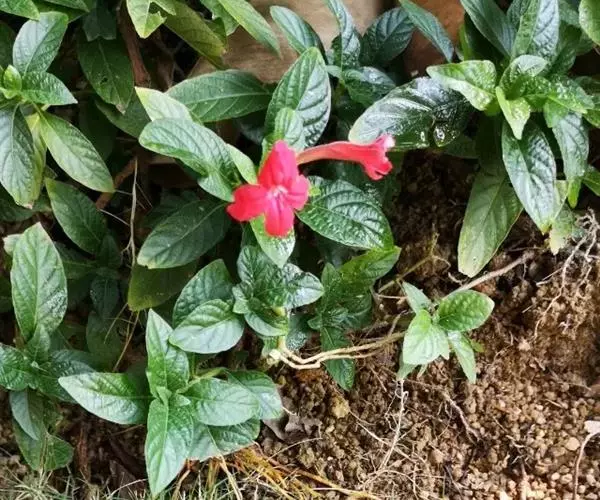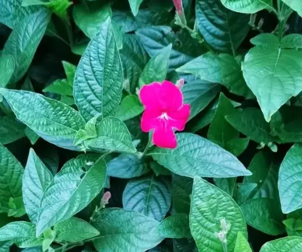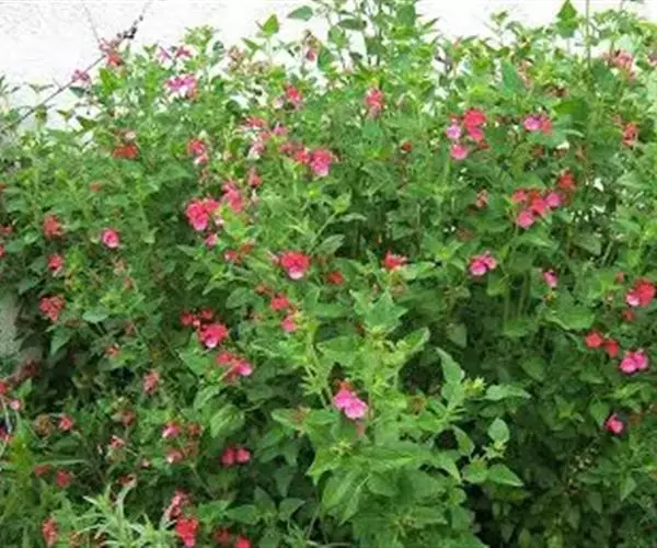 腋生,花冠圆筒状,先端五裂,花色浓鲜桃红色,开花不断。