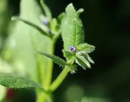 勿忘草 多年生草本。茎直立,单一或数条簇生,高20-45厘米,通常具分枝,疏生开展的糙毛,有时被卷毛。基生叶和茎下部叶有柄,狭倒披针形、长圆状披针形或线状披针形,长达8厘米,宽5-12毫米,先端圆或稍尖,基部渐狭,下延成翅,两面被糙伏毛,毛基部具小形的基盘;茎中部以上叶无柄,较短而狭。