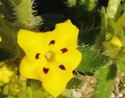 花序在花期短,花后伸长,长达15厘米,无苞片;花梗较粗,在果期直立,长4-6毫米,与萼等长或稍长,密生短伏毛;花萼长1.5-2.5毫米,果期增大,长4-5毫米,深裂为花萼长度的2/3至3/4,裂片披针形,顶端渐尖,密被伸展或具钩的毛;花冠蓝色,直径6-8毫米,筒部长约2.5毫米,裂片5,近圆形,长约3.5毫米,喉部附属物5,高约0.5毫米;花药椭圆形,先端具圆形的附属物。