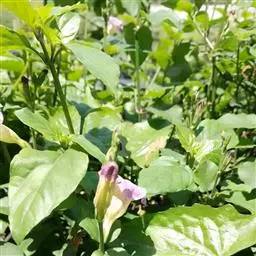 红花山牵牛是爵床科,山牵牛属植物。茎及枝条具明显或不太明显的9棱,初被短柔毛,后仅节处被毛,余无毛…