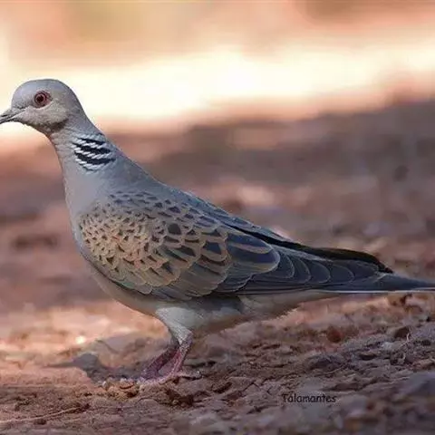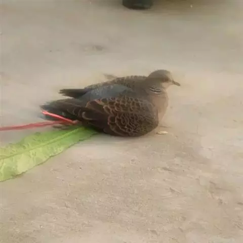 欧斑鸠体长27厘米,是一种体型略小的粉褐色斑鸠。颈侧具多黑白色细纹的斑块,翼覆羽深褐,…