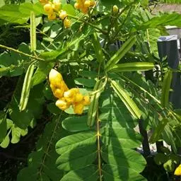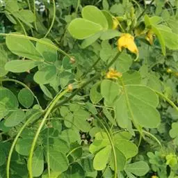 翅荚决明 Roxb.)是豆科决明属灌木植物,高3米。羽状复叶,在叶柄和叶轴上有窄翅;小叶倒卵状长圆形,…