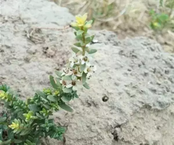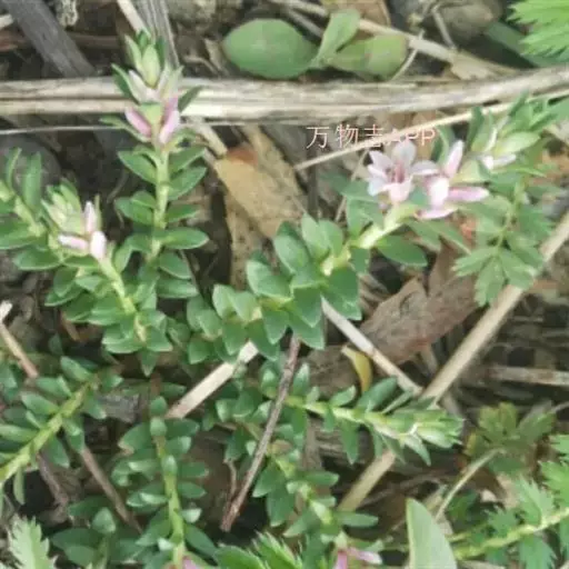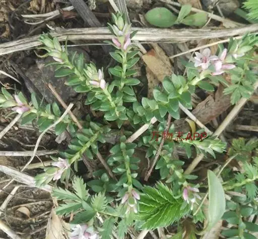 多年生小草本,高5-25厘米。根常数条束生,较粗壮,径1-2毫米;根状茎横走,粗达2毫米,节部被对生的卵状膜质鳞片。茎直立或斜生,通常单一或下部分枝,无毛,基部节上被淡褐色卵形膜质鳞片状叶。叶密集,肉质,交互对生、近对生或互生,近无柄或有短柄;叶片线形、长圆状披针形至卵状披针形,长5-15毫米,宽1.8-3.5毫米,基部楔形,先端钝,全缘。花小,腋生,花梗长约1毫米;花萼广钟形,花冠状,粉白色至蔷薇色,直径5-6毫米,5中裂,裂片长圆状卵形至卵形,长2-2.5毫米,宽约2毫米,全缘;无花冠;雄蕊5,与萼近等长或稍短。花丝基部扁宽,长约4毫米,花药心形,背部着生;子房卵形,长约1.3毫米,花柱细长,长约2.5毫米,超出花萼,胚珠8-9枚。蒴果卵状球形,长2毫米,径约2.5毫米,顶端瓣裂。种子6-8粒,棕褐色,近椭圆形,长约1毫米,宽约0.8毫米,背面扁平,腹面凸出,有2-4条棱,种皮具网纹。花期6月,果期7-8月。