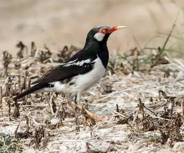 斑椋鸟(学名:Sturnus contra):是中等体型的黑白色椋鸟,体长24厘米。头顶、头侧、翼斑、腰及腹部白色,喉、胸及上体余部黑色,亚成鸟褐色。 虹膜灰色;眼周裸露皮肤橘黄;嘴黄色,嘴基红色;脚黄色。