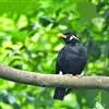 黑冠椋鸟:中等体型的椋鸟,体长21厘米。雄鸟前头为黑色并具金属光泽;头顶、颈项和羽冠亦为黑色;翅及翅上覆羽黑色;尾羽褐色,具白色端斑;上体灰色;下体淡黄褐色。雌鸟形态与雄鸟相似,但羽冠较雄鸟为短。虹膜蓝白或乳黄色;嘴峰铅绿色;跗蹠及爪柠檬黄色。头具黑色羽冠,与其他椋鸟易于区别。主要栖息于开阔落叶阔叶林和灌木林中以及多营巢于树洞中或其他洞穴内。属群鸟共栖。常4-8只结小群活动。鸣声清脆响亮。食物有果实和浆果,偶食花蜜和小型昆虫。分布于印度、中国云南耿马。常见于印度城镇、村庄及铁路沿线。偶见于中国云南西南部和西藏东南部。