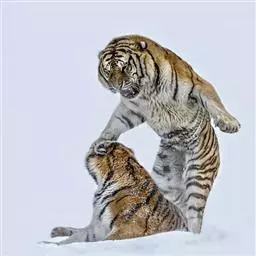 西伯利亚虎(学名:Panthera tigris ssp.altaica):又称东北虎,是虎的亚种之一。是现存体重最大的肉食性猫科动物,其中雄性体长可达3米左右,尾长约1米,体重达到350千克左右。野生西伯利亚虎体色夏毛棕黄色,冬毛淡黄色。背部和体侧具有多条横列黑色窄条纹,通常2条靠近呈柳叶状。头大而圆,前额上的数条黑色横纹,中间常被串通,极似“王”字,故有“丛林之王”之美称。
