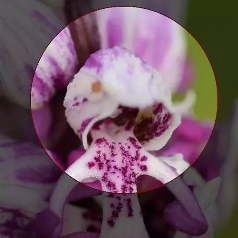 花瓣相似于侧萼片,近先端处宽2毫米,先端渐尖,具3条脉;唇瓣白色带红色斑点和条纹,近圆形,长10-14毫米,基部具长约5毫米的爪,3裂;侧裂片斜卵形,先端锐尖,上缘具不整齐的齿,摊平后两侧裂片先端之间相距约8毫米;中裂片倒卵形,宽约5毫米,先端近圆形并稍凹人,边缘具不整齐的齿;唇盘在两侧裂片之间具2条褶片;褶片下延到唇瓣的爪上;距圆筒状,长约4毫米,末端钝;蕊柱长约1厘米,基部扩大,具长约4毫米的蕊柱足;蕊柱翅在蕊柱上端扩大而呈圆耳状。花期5-9月。