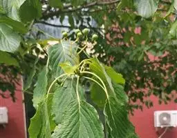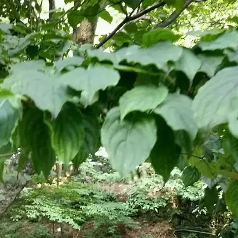 梾木(学名:Cornus macrophylla Wall.)是山茱萸科梾木属植物,乔木,高3-15米,稀达20-25米;幼枝粗壮,灰绿色,有稜角,老枝圆柱形,疏生灰白色椭圆形皮孔及半环形叶痕。叶对生,纸质,阔卵形或卵状长圆形,稀近于椭圆形。伞房状聚伞花序顶生,总花梗红色,花白色,有香味;花萼裂片4,宽三角形;花瓣4,舌状长圆形或卵状长圆形。核果近于球形,成熟时黑色。花期6-7月;果期8-9月。