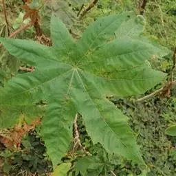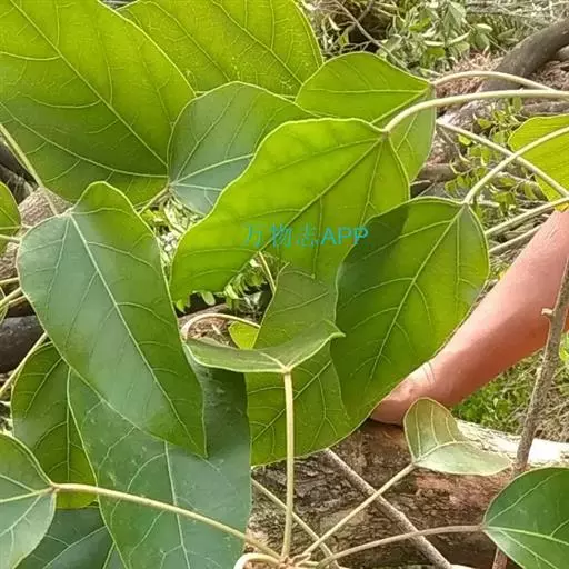 叶卵形至阔披针形或近圆形,长10-20cm,宽5-17cm,表面棕色,两面均被锈色星状短柔毛,有时脱落;叶片不分裂或3-5浅裂,叶柄长6-12cm,先端有2枚小腺体。