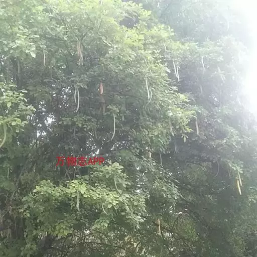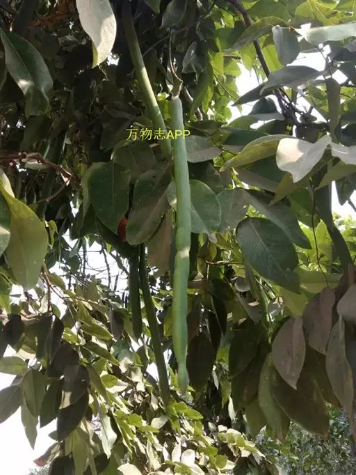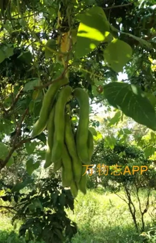 荚果圆柱形,长30-60厘米,直径2-2.5厘米,黑褐色,不开裂,有3条槽纹;种子40-100颗,为横隔膜所分开。花期6-8月;果期10月。