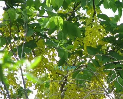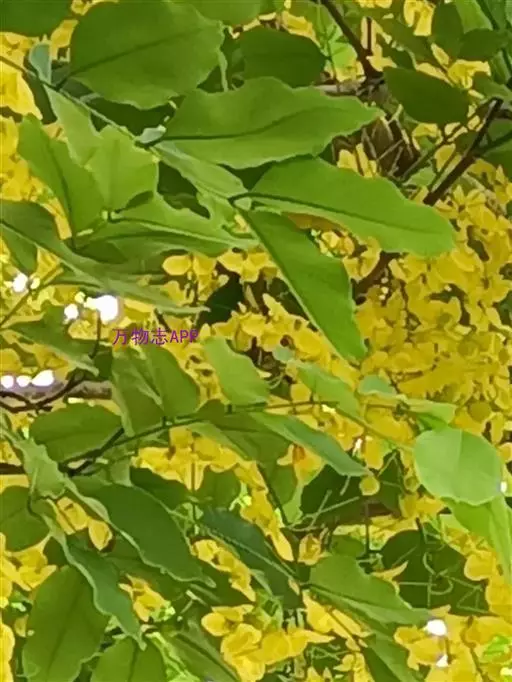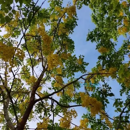 花期在5月,初夏满树金黄色花,花序随风摇曳、花瓣随风而如雨落,所以又名“黄金雨”。