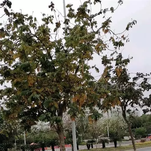 定植后每年春秋两季各松土除草1次,同时各施追肥1次。肥料选择复合肥,施肥量为250-350kg/hm2。在雨天来临之前,将肥料均匀撒在田间,如果选择在晴天施肥,撒肥后要及时进行田间灌溉。幼树生长速度较快,树型不甚整齐,因此当幼树长高至1米左右,要及时立支撑架。注意修枝整形,以提高观赏效果,修剪时间选择在花期过后,春季不宜修剪;一般培育3年的实生苗,即可用于园林绿化。