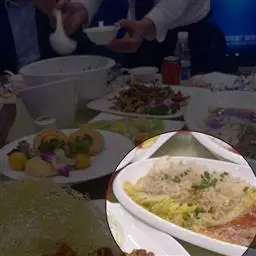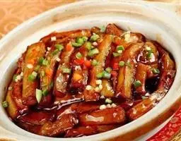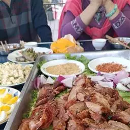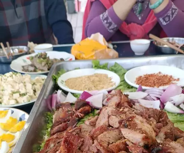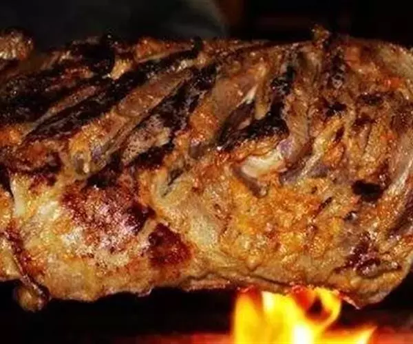 烤羊腿是呼伦贝尔招待宾客的一道佳肴名菜。烤羊腿是从烤全羊演变而来。经过长期的发展,在羊腿烘烤过程中逐步增加了各种配料和调味品,使其形、色、味、鲜集一体,色美、肉香、外焦、内嫩、干酥不腻,被人们赞为"眼未见其物,香味已扑鼻"。