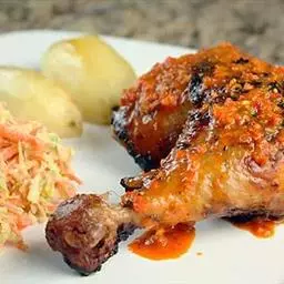 据传,烤羊腿曾是成吉思汗喜食的一道名菜。成吉思汗东征西伐期间,掌管伙食的官员,为了缩短成吉思汗的吃饭时间,以便让他稍事休息,并未征得成吉思汗同意就把成吉思汗经常吃的烤整羊,改为切块烧烤了。当时,成吉思汗战事繁忙,并没有留意这些事。而侍从却天天向给他端一盘烤羊腿让他吃。由于烤羊腿肉质酥香、焦脆、不膻不腻,他非常爱吃。以后,他每天必食,逢人还对烤羊腿赞赏一番。从此,牧民们的餐桌上便多了一道名菜。 随着时间的流逝,居住在城市里的厨师,吸取民间烤羊腿的精华,实行科学烹调,它就逐步成为当今宾馆、饭店的名肴。烤羊腿菜形美观,颜色褐红,肉质酥烂,味道香醇,色美肉嫩,浓香外溢,佐酒下饭,老少皆宜,实乃草原美肴之一。“烤羊腿”是蒙族名菜,流传广远,西北各地,皆有制作。此菜以羊腿为主料,经腌制再加调料烘烤而成。成菜羊腿形整,颜色红润,酥烂醇香,滋味鲜美,回味悠长。