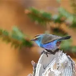 凤头雀莺:小型鸟类。体长9-10厘米,雄鸟呈毛茸茸的紫色和绛紫色,顶冠淡紫灰色,额及凤头白色,尾全蓝。…