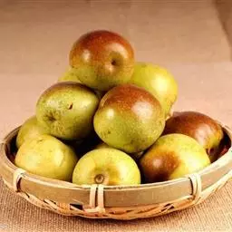 冬枣是枣树的一个栽培品种。发源于山东省滨州市沾化区下洼镇,是无刺枣树的一个晚熟鲜食优良品种,也是公认的品质最好的鲜食枣品种。平均单果重17.5g,最大单果重可达25g,状如苹果,有“小苹果”之称。果皮赭红光亮、皮薄肉脆、甘甜清香、营养丰富,可食率达95%。