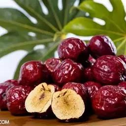 冬枣不仅味道可口、皮脆、肉质细嫩、汁多无渣、甘甜清香,而且营养极丰富。冬枣含糖20%~36%;含有天门冬氨酸、苏氨酸、丝氨酸等19种人体所需的氨基酸,总含量为0.985mg/100g冬枣含蛋白质1.65%,膳食纤维2.3%,总黄酮0.26%,烟酸0.87mg/100g,胡萝卜素1.1mg/kg,维生素B10.1mg/kg,维生素B22.2mg/kg。冬枣果实还含有较多的维生素A、维生素E、钾、钠、铁、铜等多种微量元素,营养价值为百果之冠,有“百果王”之称。
